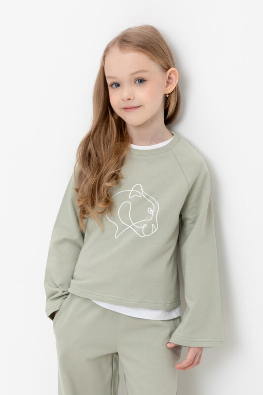 Укороченная толстовка с расклешенными рукавами и принтом для девочки из высококачественного петельчатого футера . Обтачка горловины выполнена из эластичного полотна.Оригинальный принт выполнен из стойких текстильных красителей.