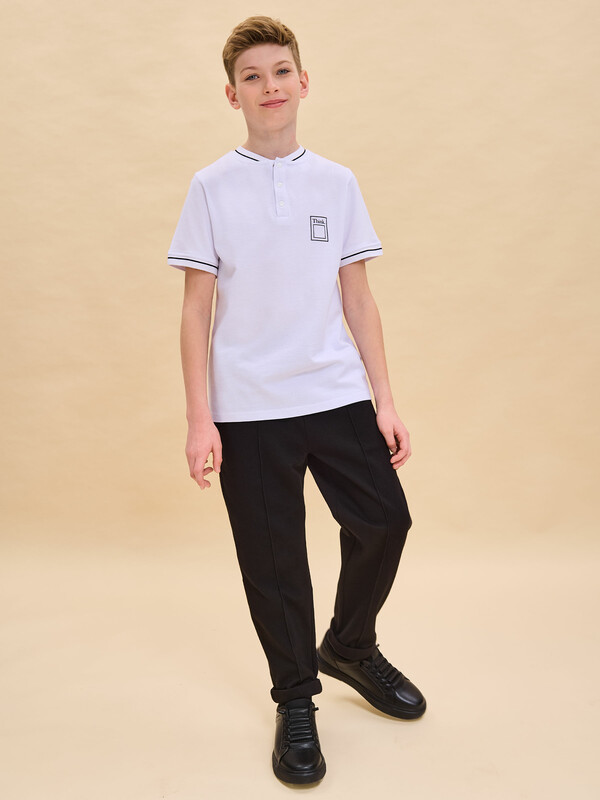 Базовая футболка хенли для мальчика. Подходит в качестве школьной одежды. Горловина отделана декоративной эластичной рибаной, которая долго сохраняет форму, устойчива к частым стиркам, не растягивается. Застёжка под горловиной на три кнопки — джемпер школьный удобно надевать и снимать. Трикотажная футболка выполнена из 100% высококачественного хлопка. Благодаря натуральному составу ткани пике изделие мягкое, воздухопроницаемое и очень комфортное. Не жарко даже самому активному ребёнку. На груди футболка базовая украшена лаконичным силиконовым принтом, устойчивым к многочисленным стиркам. Такие футболки на мальчика — хороший вариант одежды для школы. Модель представлена в нескольких универсальных расцветках — легко сочетать с любыми брюками, пиджаками, джемперами. Рекомендуемый уход: стирать при температуре не выше 30 °С, без предварительного замачивания, с изнанки, расправить перед сушкой. Выбирайте нужный размер по таблице размеров на фото. Цвет товара на экране вашего устройства может отличаться от цвета изделия вживую.