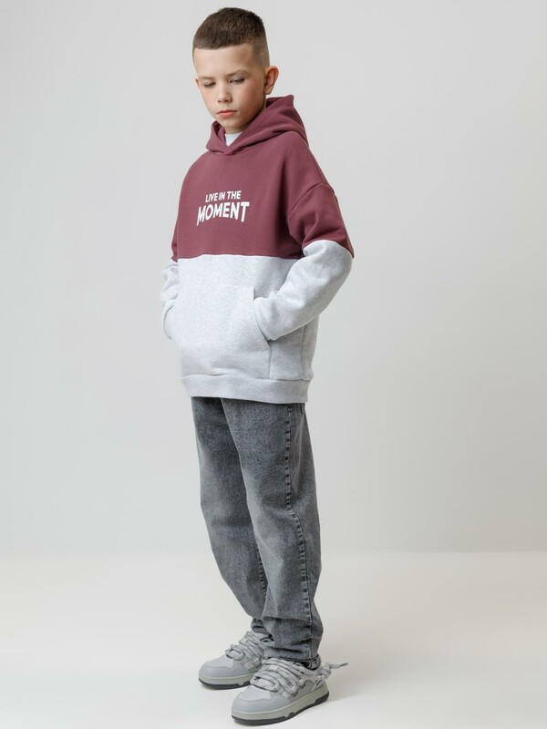 Худи с капюшоном для мальчика из тёплого футера с начёсом. Пояс и манжеты выполнены из мягкого эластичного трикотажа. Спереди удобный и вместительный карман-кенгуру. Худи сохраняет форму и стойкий цвет после многочисленных стирок и идеально подходит на каждый день. Оригинальный принт выполнен из стойких текстильных гипоаллергенных красителей. Все трикотажные полотна производятся в соответствии с нормами швейцарского сертификата ЭкоТекс.
