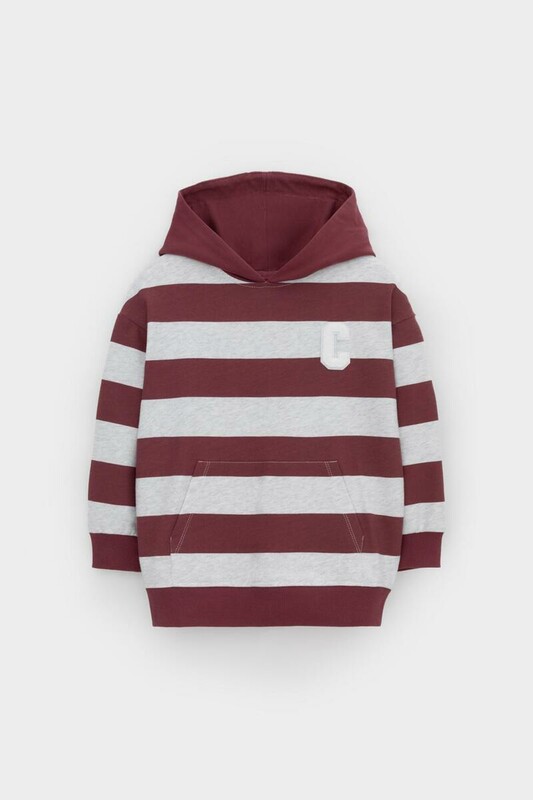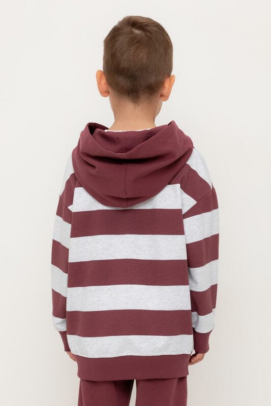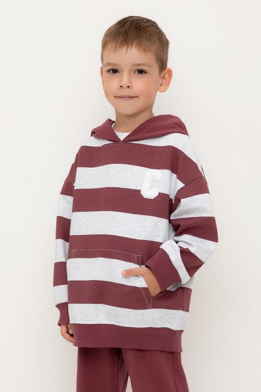 Трикотажное худи с капюшоном из набивного петельчатого футера. Спереди удобный накладной карман-кенгуру. Манжеты и пояс из эластичного трикотажа в рубчик.
