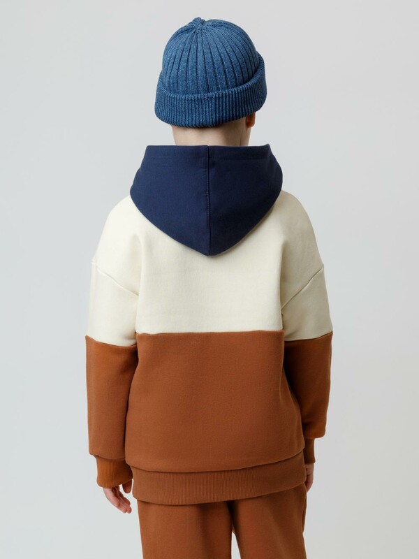Худи с капюшоном для мальчика из тёплого футера с начёсом. Пояс и манжеты выполнены из мягкого эластичного трикотажа. Спереди удобный и вместительный карман-кенгуру. Худи сохраняет форму и стойкий цвет после многочисленных стирок и идеально подходит на каждый день. Оригинальный принт выполнен из стойких текстильных гипоаллергенных красителей. Все трикотажные полотна производятся в соответствии с нормами швейцарского сертификата ЭкоТекс.