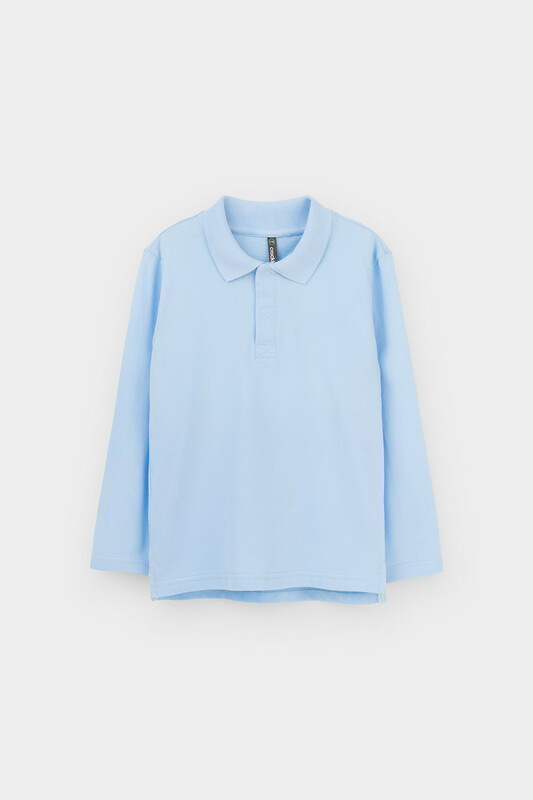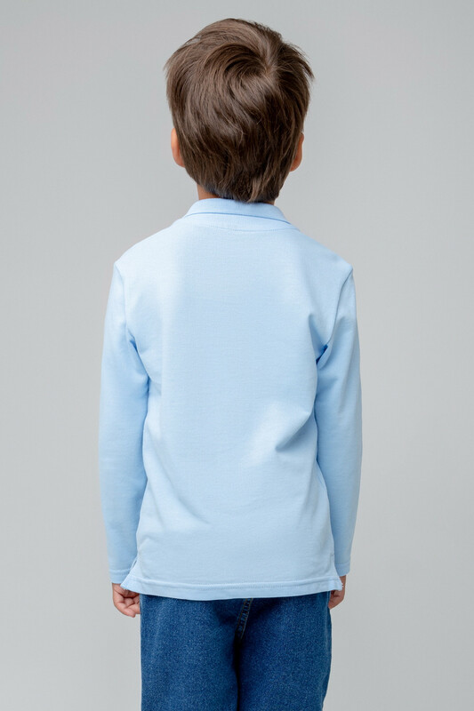Джемпер поло с длинными рукавами для мальчика из трикотажного полотна пике. Вязаный воротник. Удобная застежка спереди. По бокам разрезы, обработанные киперной лентой.