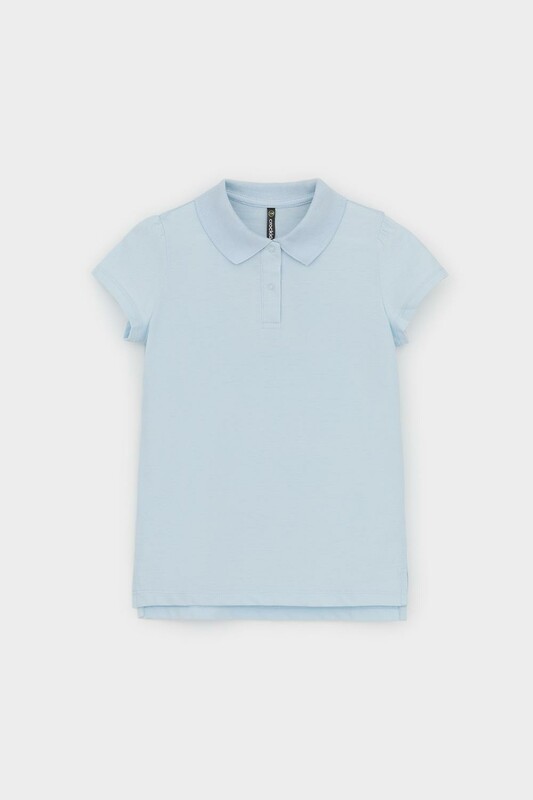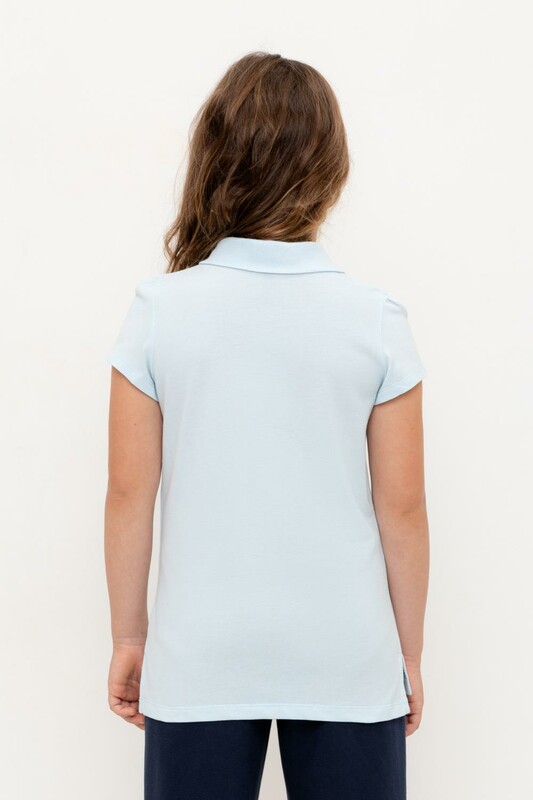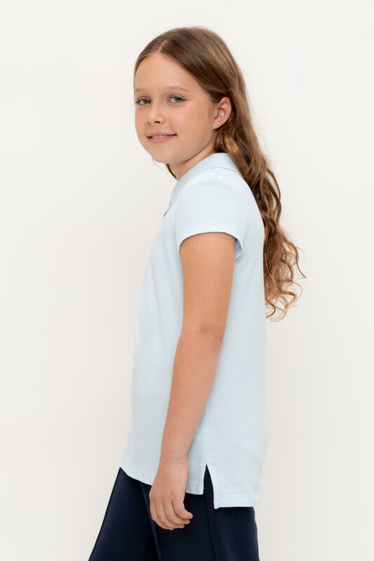 Поло для девочки из высококачественного трикотажного полотна пике. У изделия вязаный воротник и застежка спереди на пуговицы.