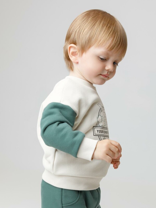Свитшот для мальчика из высококачественного петельчатого футера. В составе 80% натурального хлопка и 20% полиэстера, при этом полиэстер ввязан внутрь по особой технологии и не соприкасается с кожей. Обтачка горловины, манжеты и пояс выполнены из эластичного полотна. Для удобства одевания имеется застёжка на кнопки. Оригинальный принт нанесён с помощью стойких текстильных гипоаллергенных красителей.