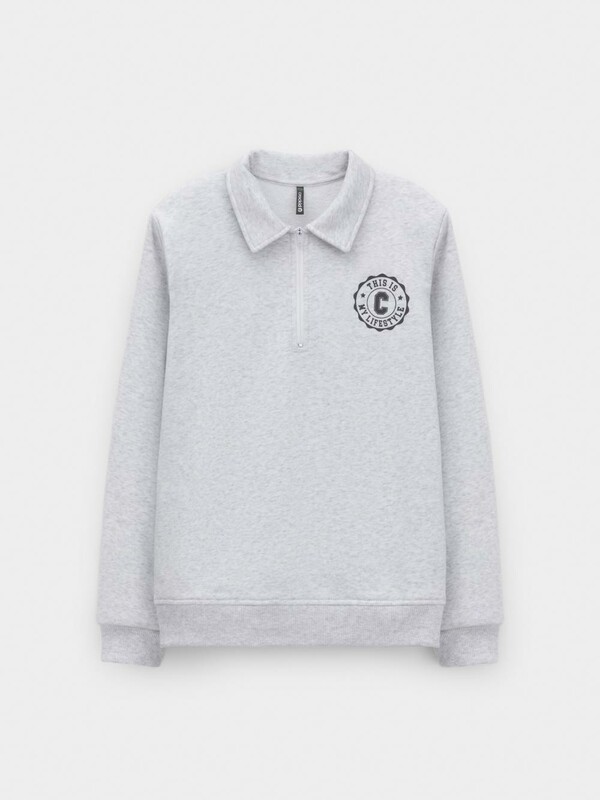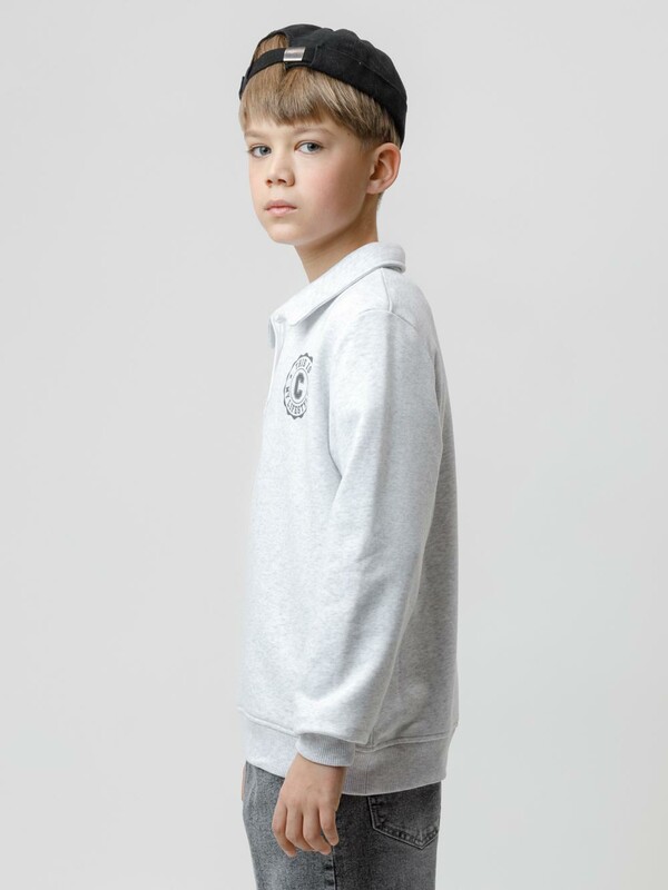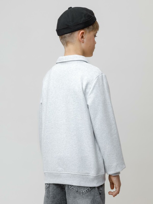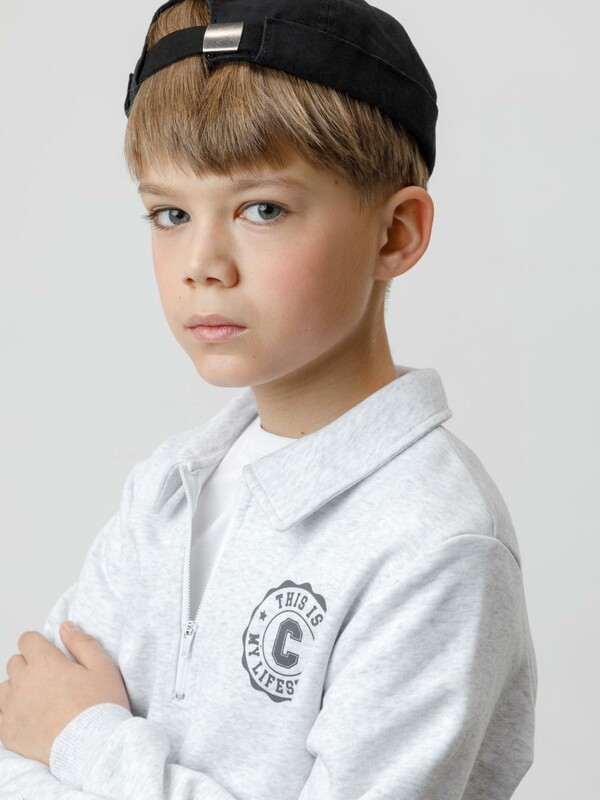Свитшот с воротником для мальчика. Изготовлен из высококачественного петельчатого футера. В составе 80% натурального хлопка и 20% полиэстера, при этом полиэстер ввязан внутрь по особой технологии и не соприкасается с кожей. Манжеты и пояс выполнены из эластичного полотна. На груди короткая застёжка на молнию. Оригинальный принт выполнен из стойких текстильных гипоаллергенных красителей. Изделие сохраняет цвет и форму после многократных стирок.