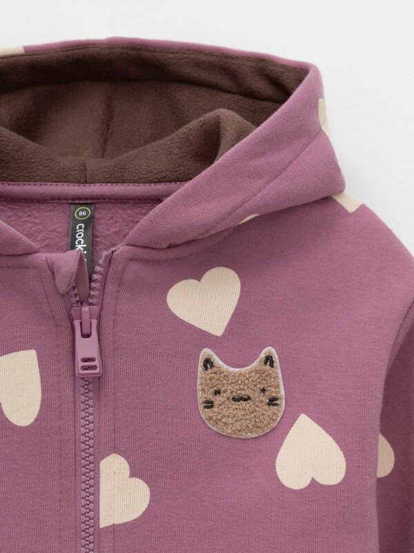 Тёплая толстовка для девочки со спущенными плечами. Изготовлена из высококачественного футера с начёсом. Застёгивается на молнию. В капюшоне мягкий подклад из флиса с длинным ворсом. Манжеты и пояс выполнены из эластичного полотна. Спереди удобный вместительный карман-кенгуру. Изделие сохраняет цвет и форму после многократных стирок. Все трикотажные полотна производятся в соответствии с нормами швейцарского сертификата ЭкоТекс.