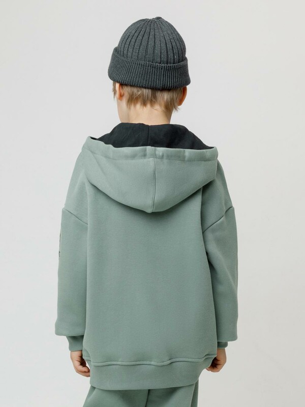 Толстовка с капюшоном для мальчика из тёплого футера с начёсом. Пояс и манжеты выполнены из мягкого эластичного трикотажа. Застёгивается на молнию. Спереди удобный и вместительный карман-кенгуру. Худи сохраняет форму и стойкий цвет после многочисленных стирок и идеально подходит на каждый день. Оригинальный принт выполнен из стойких текстильных гипоаллергенных красителей. Все трикотажные полотна производятся в соответствии с нормами швейцарского сертификата ЭкоТекс.