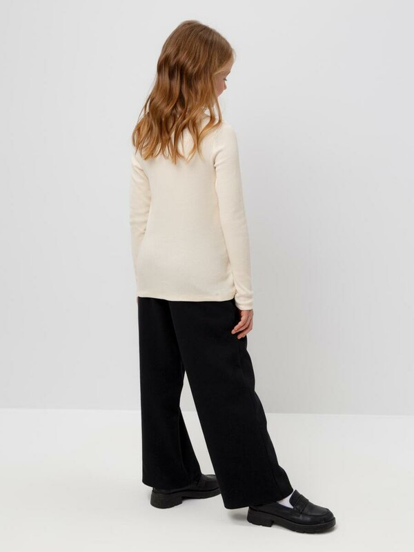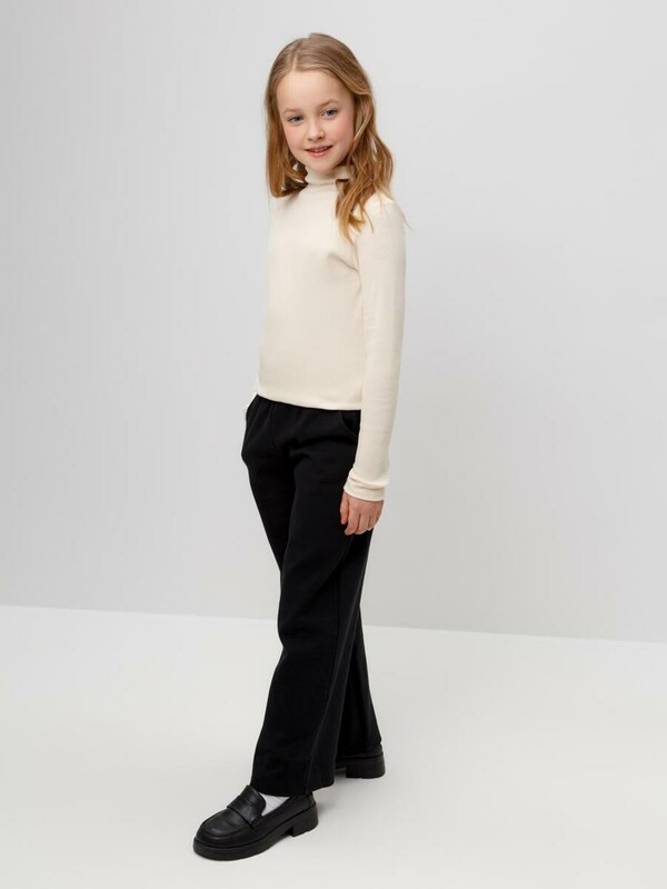Базовая водолазка для девочки из эластичного трикотажа кашкорсе. Изделие имеет цельнокроенный воротник и длинные втачные рукава. Водолазка сохраняет цвет и форму после многократных стирок.