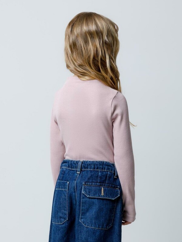 Базовая водолазка для девочки из эластичного трикотажа кашкорсе. Изделие имеет цельнокроенный воротник и длинные втачные рукава. Водолазка сохраняет цвет и форму после многократных стирок.