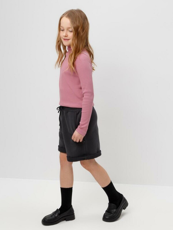 Базовая водолазка для девочки из эластичного трикотажа кашкорсе. Изделие имеет цельнокроенный воротник и длинные втачные рукава. Водолазка сохраняет цвет и форму после многократных стирок.