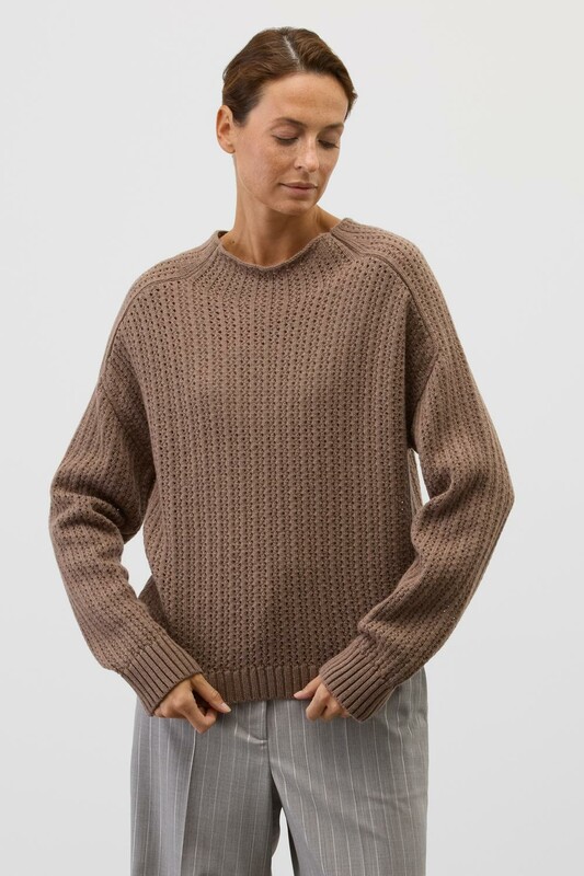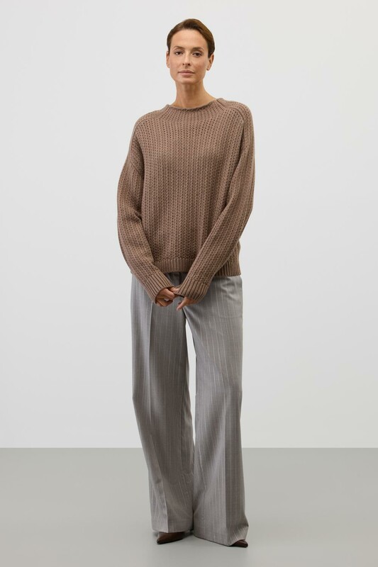 Джемпер из ажурной вязки, обладающий мягкой текстурой, создан из высококачественной пряжи. Особая комбинация шерсти и акрила создает атмосферу комфорта, а также обеспечивает приятное прилегание к телу. Состав является гипоаллергенным и способствует отличному сохранению формы изделия.