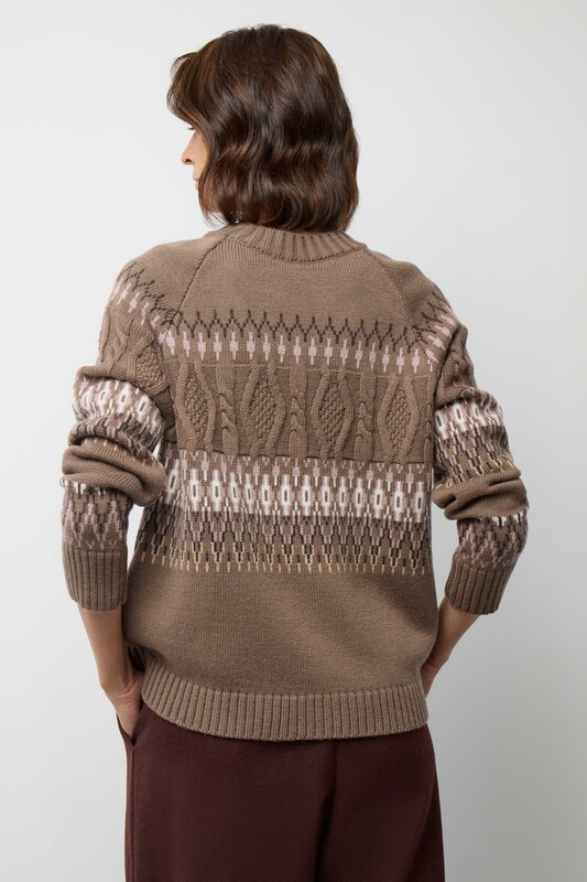 Мягкий джемпер в скандинаском стиле из премиальной пряжи, созданный с использованием инновационной технологии смешанного волокна. Деликатное сочетание шерсти и акрила обеспечивает непревзойденный комфорт: изделие нежно облегает фигуру, гарантирует мягкость прикосновения и сохраняет безупречную форму.