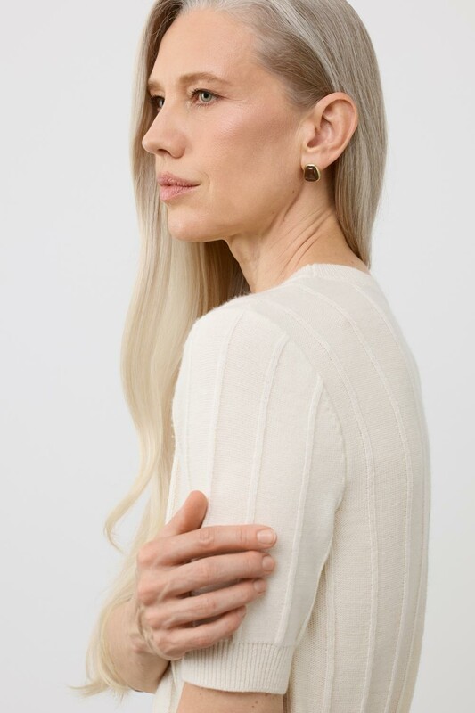 Короткий рукав и рельефная текстура придают джемперу современный вид, идеально сочетающийся с различными стилями одежды.