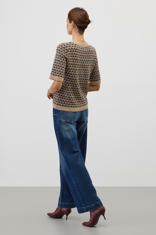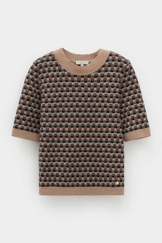 Джемпер с коротким рукавом в кантри-стиле, изготовленный из высококачественной пряжи с применением передовой технологии смешанных волокон. Изысканное сочетание шерсти и акрила создает непревзойденный комфорт: модель деликатно подчеркивает силуэт, обеспечивает нежное прикосновение к коже и сохраняет безупречный внешний вид.
