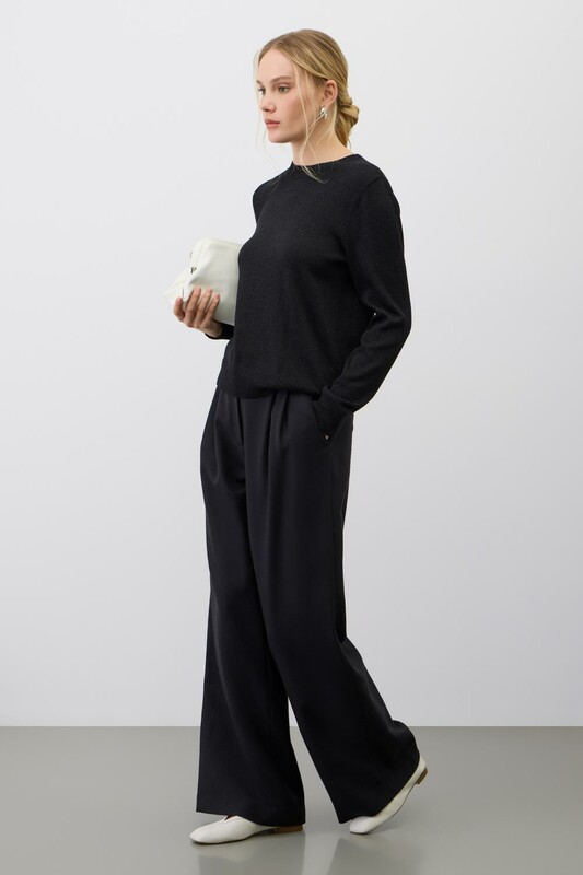 Благодаря высокому уровню вискозы джемпер приятно охлаждает кожу и создает ощущение мягкости. Уникальное добавление метанита придает ткани изысканный мерцающий эффект, который тонко подчеркивает вашу индивидуальность. Этот джемпер идеально подходит для создания как повседневных, так и вечерних образов.