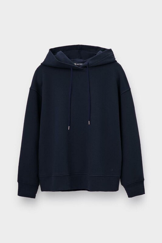 Толстовка с капюшоном и боковыми карманами из петельчатого футера трехнитки. В составе 80% натурального хлопка и 20% полиэстера, при этом полиэстер ввязан внутрь по особой технологии и не соприкасается с кожей. Спущенные рукава, манжеты из основного полотна. Свободный силуэт.