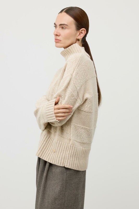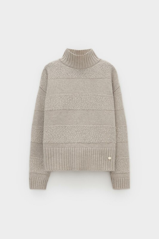 Джемпер из изысканной пряжи с пайетками. Уникальное сочетание натуральных волокон обеспечивает непревзойденную мягкость. Меринос отлично удерживает тепло, альпака дарит легкость и воздушность, кашемир придает шелковистость, а вискоза приятный блеск. Нежные пайетки ненавязчиво мерцают при каждом движении, добавляя Вашему образу утонченную элегантность.