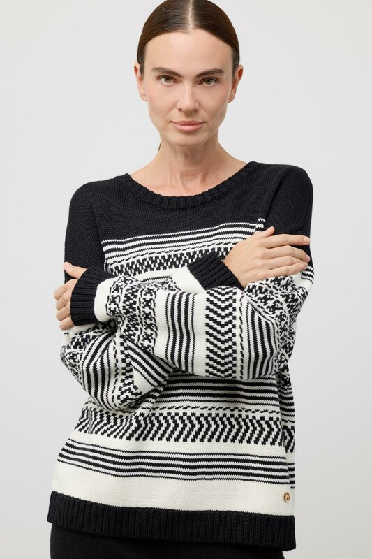 Мягкий джемпер в скандинаском стиле из премиальной пряжи, созданный с использованием инновационной технологии смешанного волокна. Деликатное сочетание шерсти и акрила обеспечивает непревзойденный комфорт: изделие нежно облегает фигуру, гарантирует мягкость прикосновения и сохраняет безупречную форму.