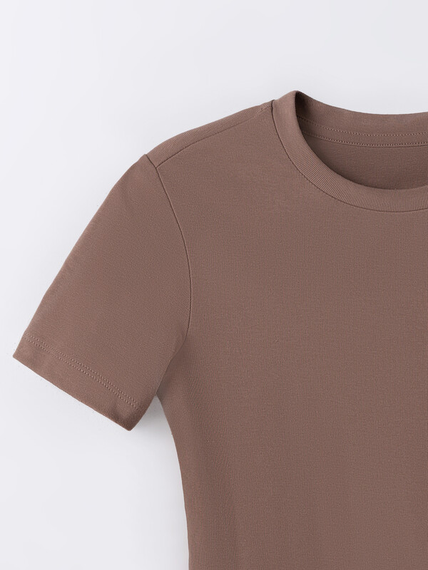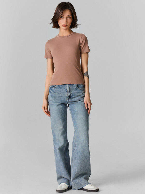 Джемпер прилегающего силуэта. Перед и спинка цельнокроеные. Рукава короткие, втачные. Горловина обработана обтачкой из основного полотна. Низ и рукава вподгибку.