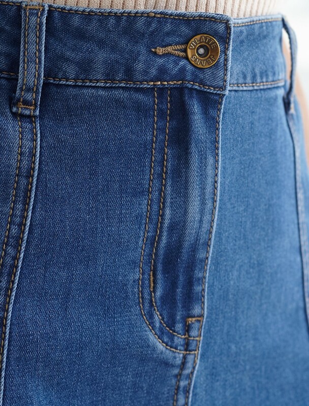 Эффектная юбка миди А силуэта выполнена из эластичного денима, что обеспечивает комфорт и легкость движений на каждый день. Невероятно женственная юбка глубокого синего цвета с декоративными плоскими швами по всей длине визуально вытягивает фигуру, два боковых шва расположены под наклоном, что еще больше стройнит силуэт и подчеркивает бедра, создавая гармоничный силуэт. Декоративные швы придают особый акцент образу, делая его современным и стильным. Благодаря универсальному фасону расклешенная юбка подходит для худеньких девушек. Эластичная ткань легко адаптируется под особенности фигуры, не стесняет движений и держит форму в течение длительной носки, натуральный материал отличается высокой износостойкостью и обеспечивает отличную воздухопроницаемость