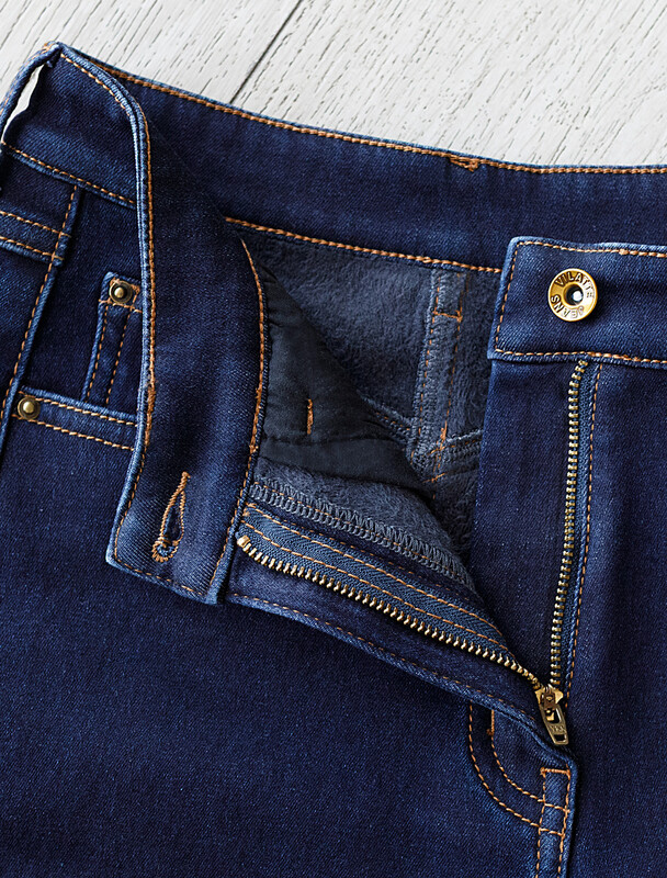 Джинсы-трубы из эластичного денима на флисе