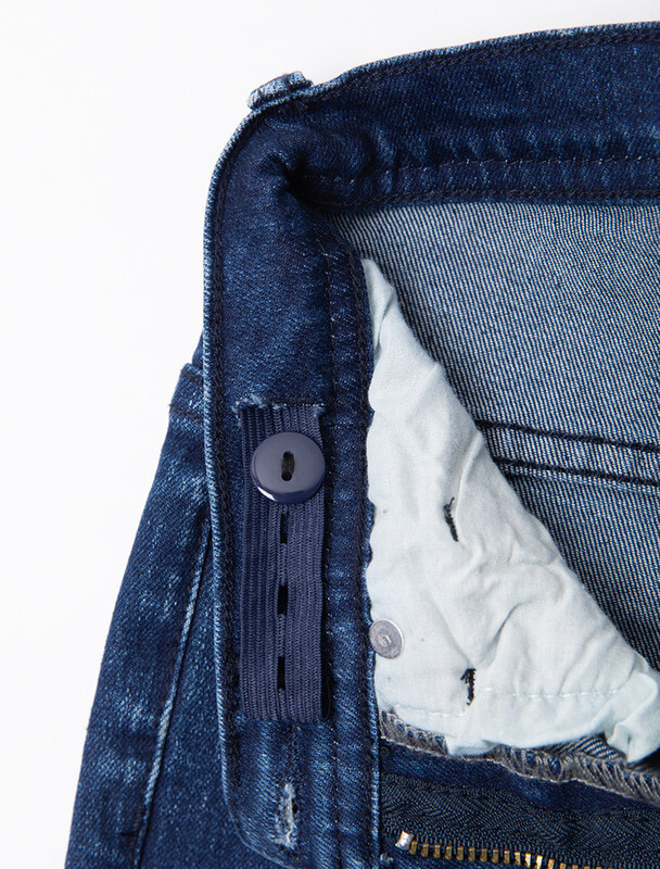 Джинсы-skinny выполнены из гладкого эластичного хлопка. Модель регулируется на внутренних резинках и обеспечивает идеальную посадку без ремня. Эластичная ткань хорошо пропускает воздух и комфортно садится по фигуре, не теряя со временем форму. Изделие дополнено высококачественной металлической фурнитурой с логотипом бренда.