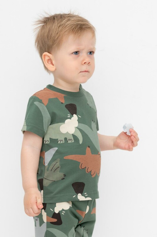 Футболка для мальчика из высококачественного трикотажного полотна. Оригинальная набивка выполнена из стойких текстильных красителей. Для удобства на плече застежка на кнопки