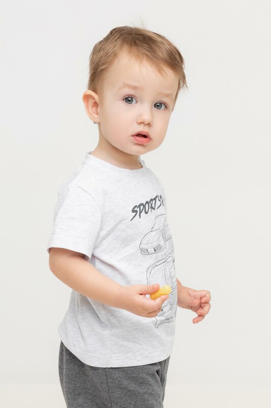 Футболка для мальчика с принтом из высококачественного трикотажного полотна. Для удобства на плече застежка на кнопки