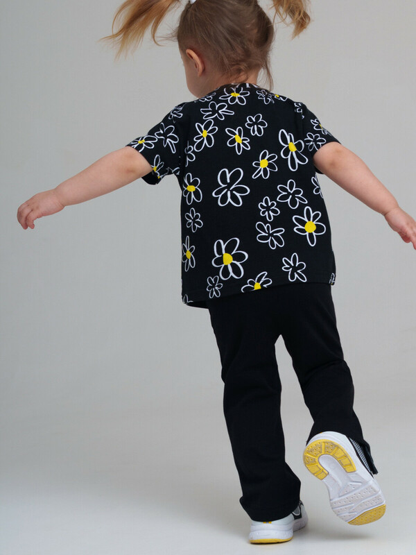 Футболка детская для девочки. Высокое содержание хлопка. Благодаря наличию эластана в составе ткани изделие держит форму и меньше мнется. Застежка на кнопки на плече. Модель выполнена из качественного и приятного на ощупь трикотажа.