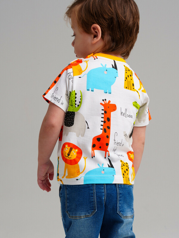 Футболка классической посадки из качественного и приятного на ощупь трикотажа джерси. Высокое содержание хлопка 95%. Благодаря наличию эластана в составе ткани изделие проще в уходе и держит форму. Застежка на кнопки на левом плече.