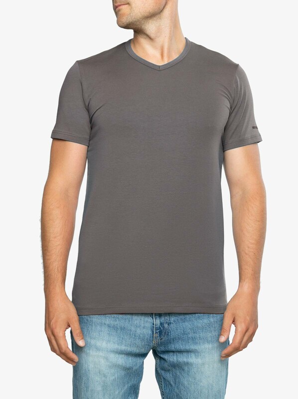 Однотонная футболка из хлопка с коротким втачным рукавом и V-образным вырезом горловины создана, чтобы стать основой для лаконичных повседневных образов.