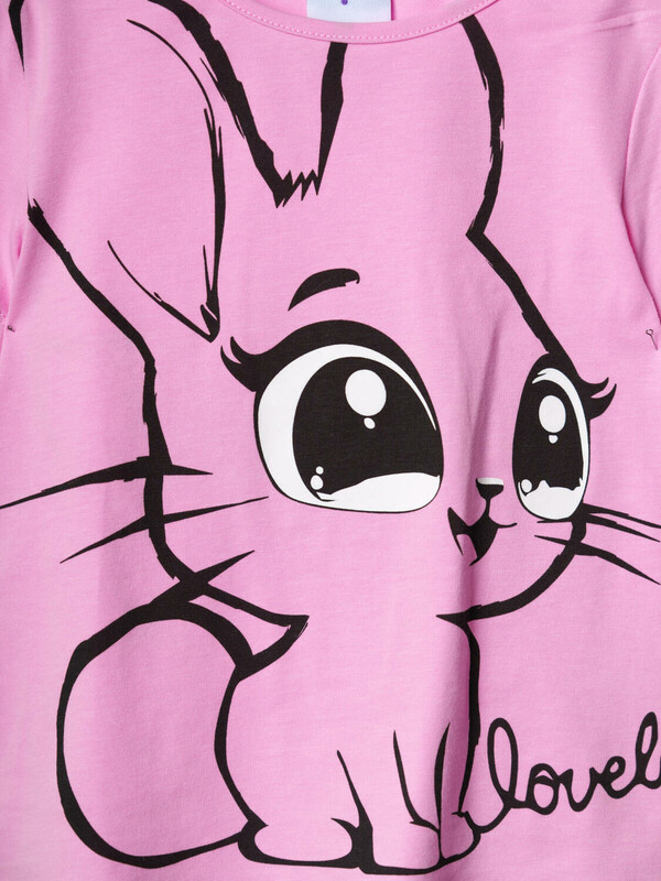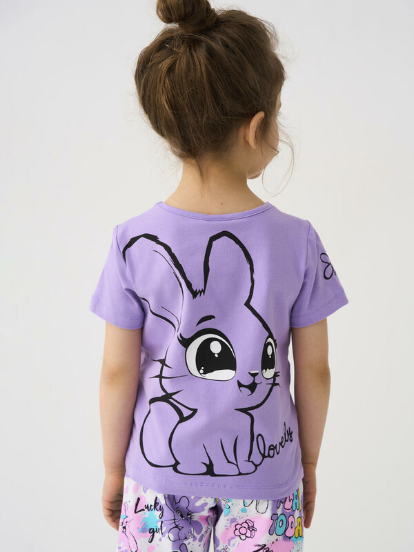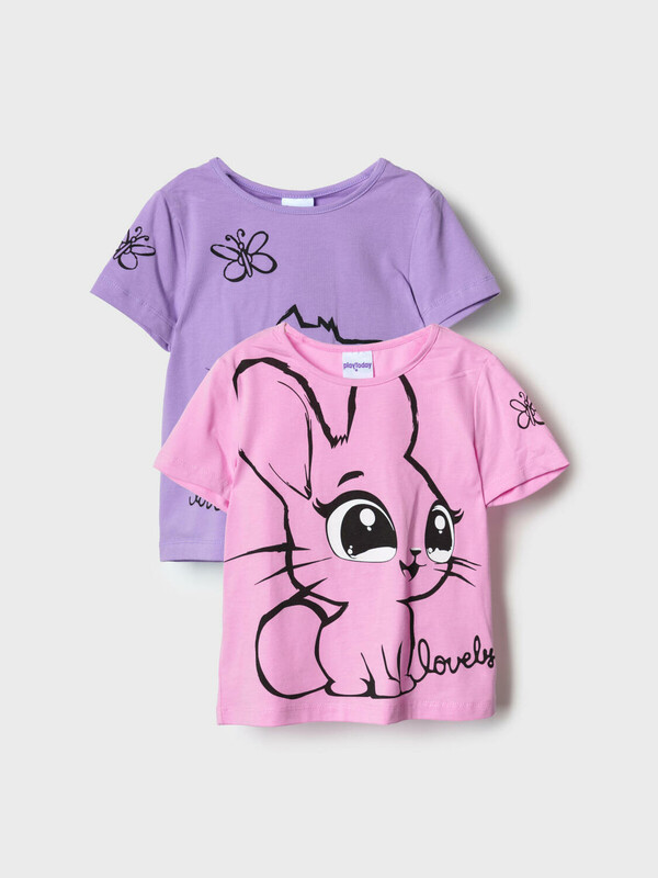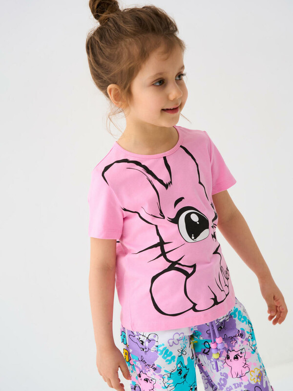 Набор детских футболок для девочки. Комплект из 2 футболок выполнен из хлопкового трикотажа джерси. Принты с милыми кроликом и котенком.