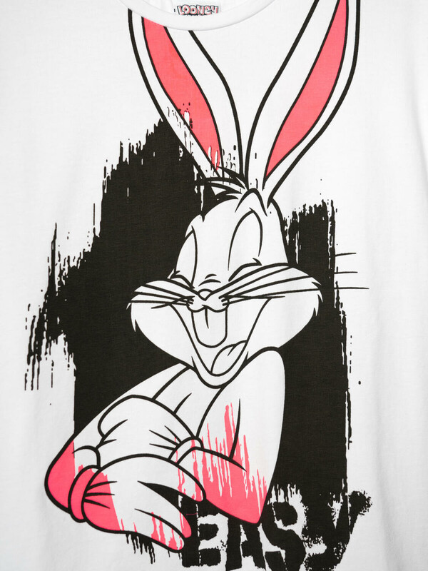 Футболка оверсайз для девочки подростка. Модель выполнена из эластичного хлопкового трикотажа джерси. На груди расположен крупный принт с любимым персонажем "Looney Tunes" Бакз Банни.