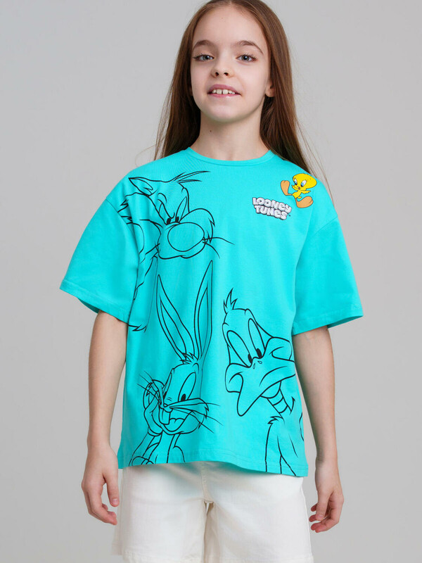 Футболка оверсайз для девочки подростка. Высокое содержание хлопка. Благодаря наличию эластана в составе ткани изделие держит форму и меньше мнется. Модель выполнена из качественного и приятного на ощупь трикотажа.