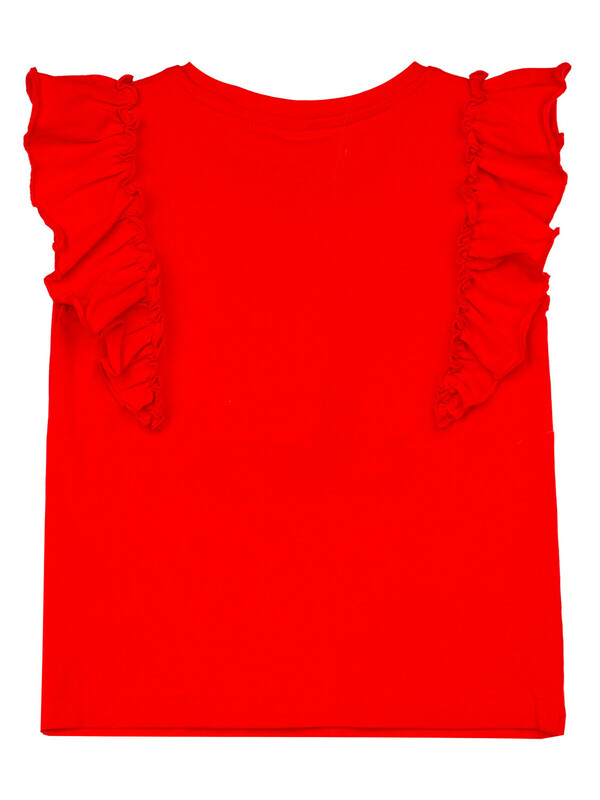 Футболка regular fit из качественного и приятного на ощупь трикотажа джерси. Высокое содержание хлопка 95%. Благодаря наличию эластана в составе ткани изделие проще в уходе и держит форму. Рукава-крылышки.