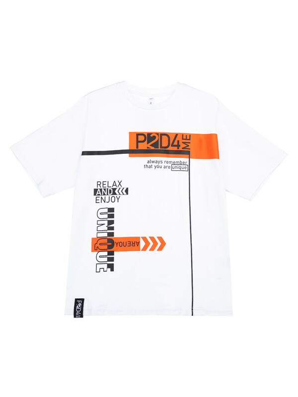 Футболка свободного силуэта из качественного и приятного на ощупь трикотажа джерси. Высокое содержание хлопка 95%. Благодаря наличию эластана в составе ткани изделие проще в уходе и держит форму.