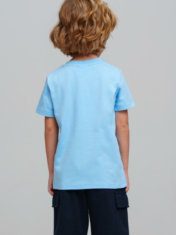 Футболка детская для мальчика. Футболка из качественного и приятного на ощупь трикотажа джерси. Модель с высоким содержанием хлопка 95%. Благодаря наличию эластана в составе ткани изделие проще в уходе и держит форму. Модель выполнена из качественного и приятного на ощупь трикотажа.