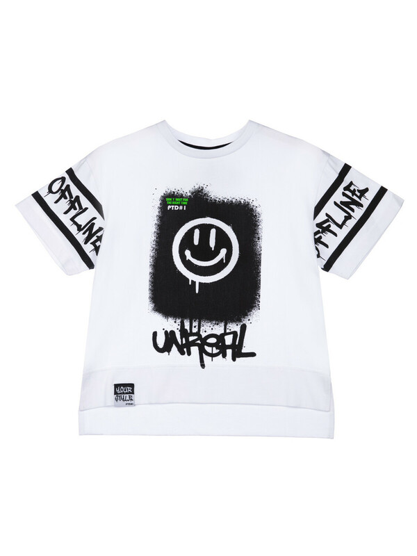 Футболка свободного силуэта из качественного и приятного на ощупь трикотажа джерси. Высокое содержание хлопка 95%. Благодаря наличию эластана в составе ткани изделие проще в уходе и держит форму.