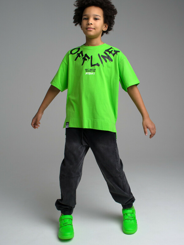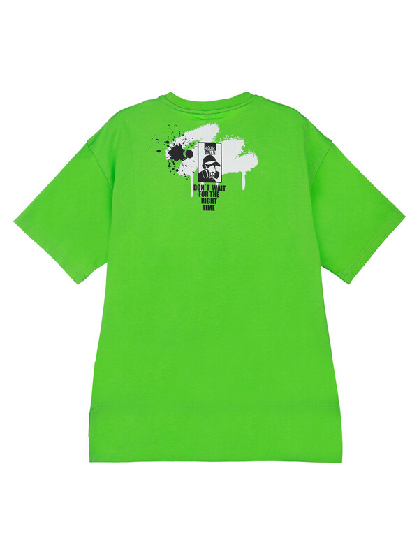 Футболка свободного силуэта из качественного и приятного на ощупь трикотажа джерси. Высокое содержание хлопка 95%. Благодаря наличию эластана в составе ткани изделие проще в уходе и держит форму.