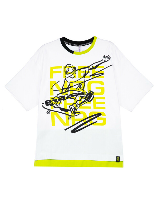 Футболка oversize из качественного и приятного на ощупь трикотажа джерси. Высокое содержание хлопка 95%. Благодаря наличию эластана в составе ткани изделие проще в уходе и держит форму.