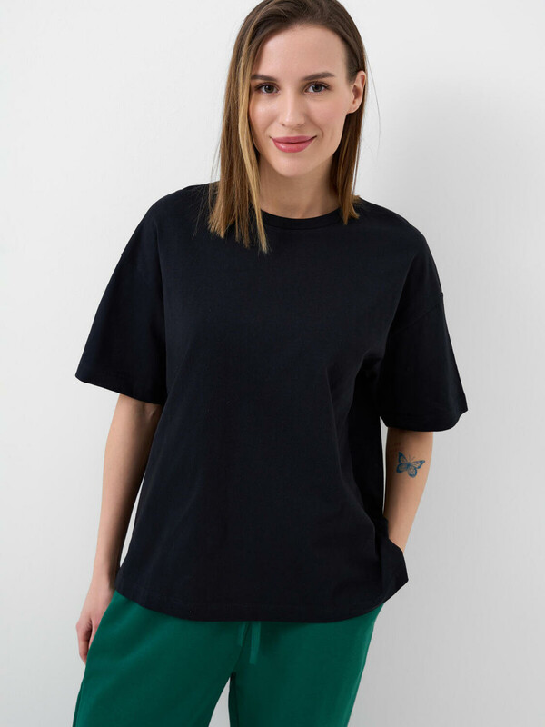 Женская базовая футболка оверсайз. Модель выполнена из эластичного хлопкового трикотажа джерси.