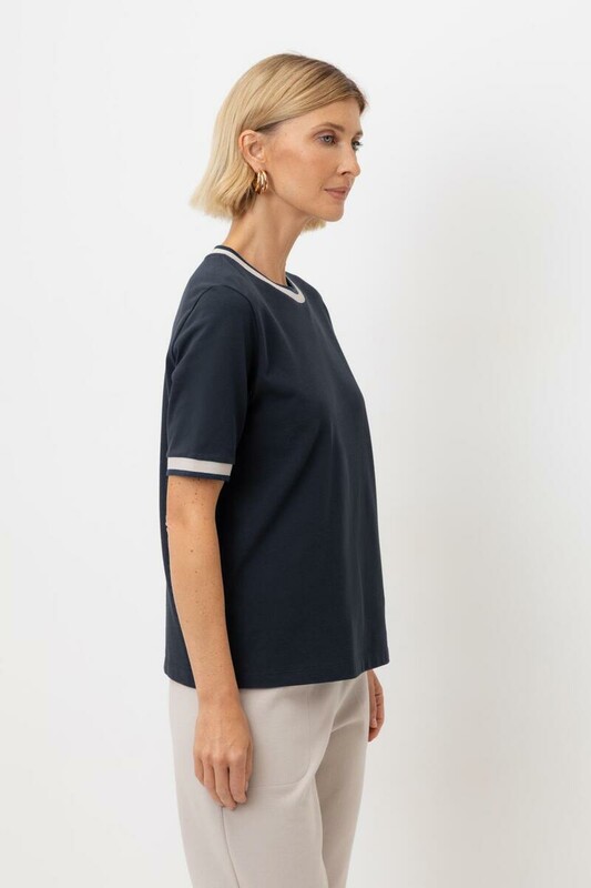 Футболка, изготовленная из 100% хлопка в переплетении пике. Дарит ощущение комфорта и легкости. Глубокий цвет индиго комбинируется с различными элементами гардероба, создавая универсальные образы. Вязаный воротник и манжеты, выполненные с особым вниманием к деталям, придают изделию аккуратный и завершенный вид.