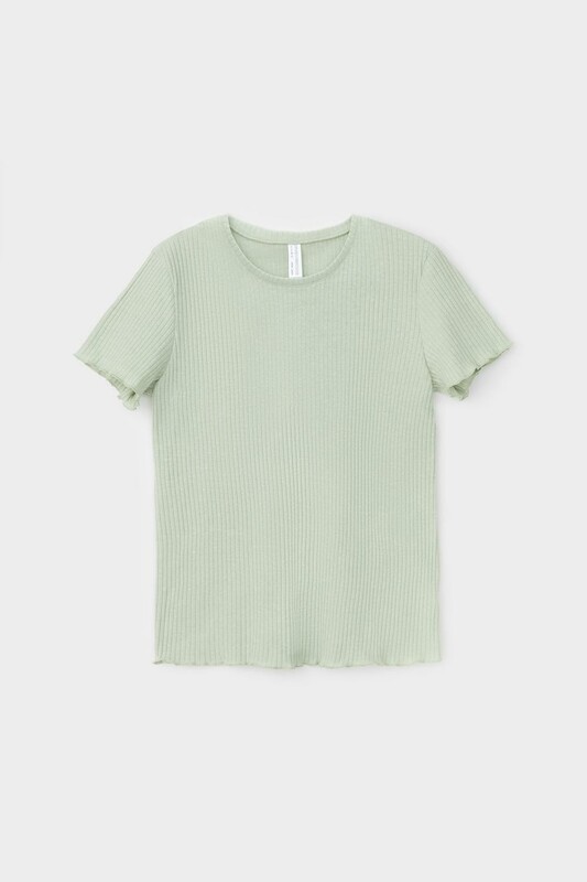 Комфортная футболка из трикотажного полотна в рубчик и эффектом меланжа.