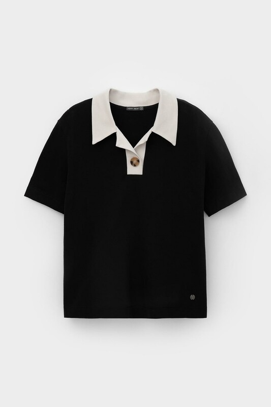 Джемпер поло с короткими рукавами из пике с V-образным вырезом и декоративной пуговицей.