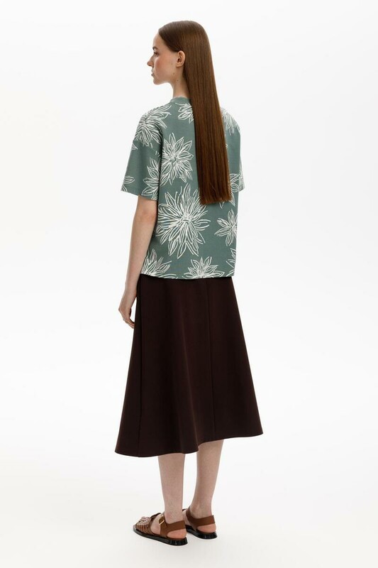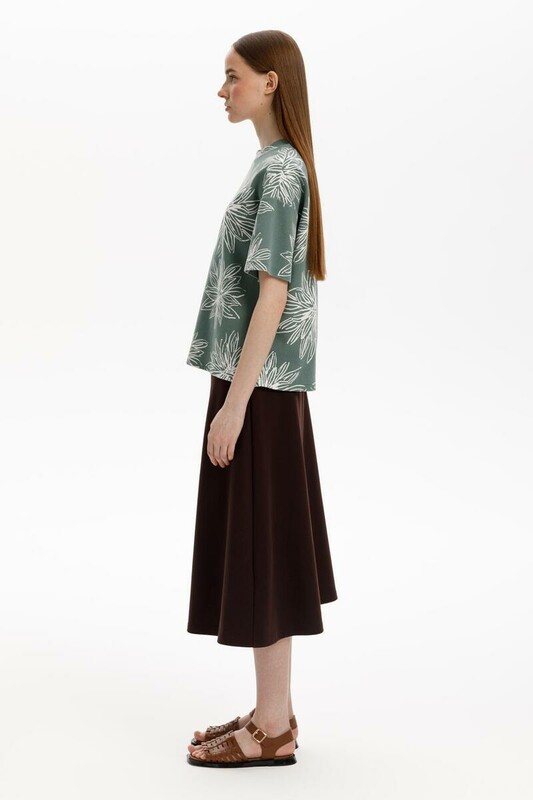 Блуза прямого силуэта со спущенным рукавом, изготовленная из премиального трикотажного полотна DOUBLE FACE. Мягкий на ощупь трикотаж выполнен из высококачественной гребенной пряжи.