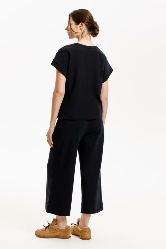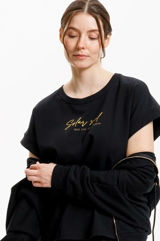 Футболка прямого силуэта из высококачественного гребенного хлопка с добавлением эластана. Мягкая и струящаяся фактура полотна за счет специальной обработки soft touch дает ощущение комфорта в жаркие летние дни. Мягкий на ощупь принт выполнен из водных красок, что обеспечивает устойчивость к многократным стиркам.