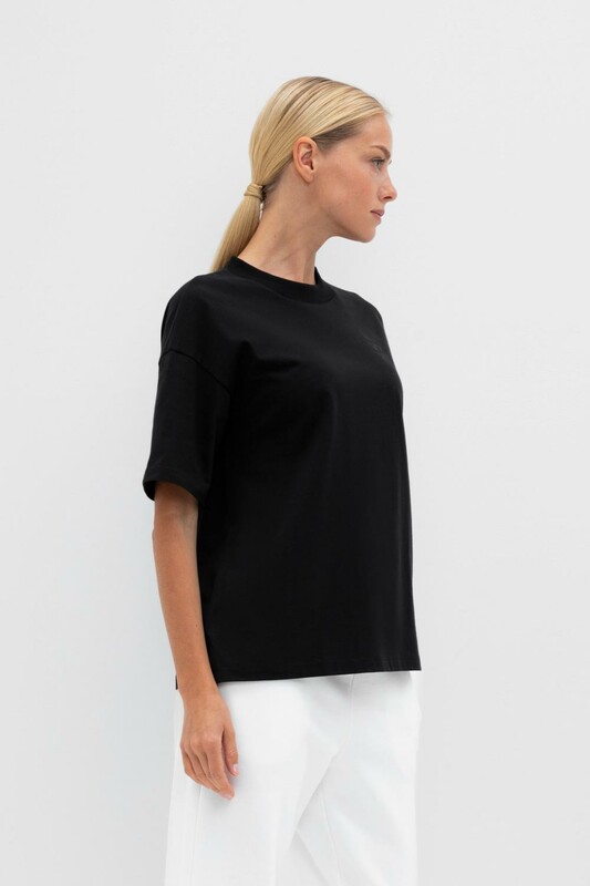 Женская футболка с разрезами и принтом из длинноволокнистого гребенного хлопка.