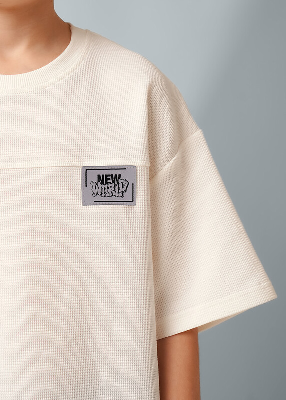 Футболка для мальчика из пике. Модель с декоративным резом по переду и стильной нашивкой. Комфортный крой, эластичная горловина. Практичная и модная базовая вещь для повседневного гардероба.