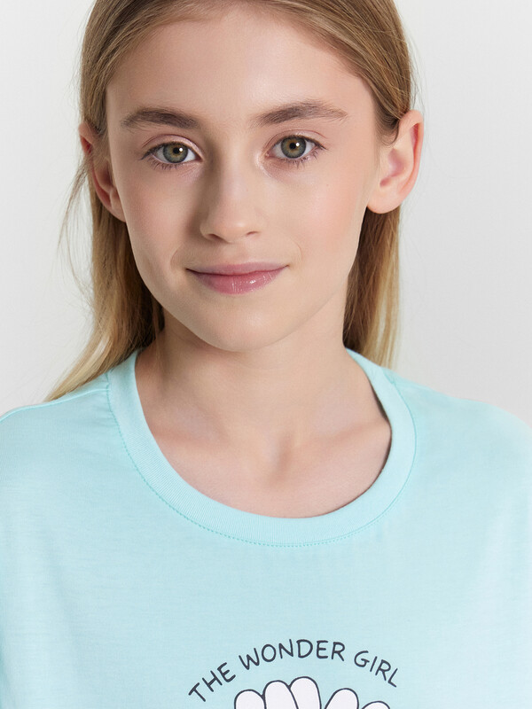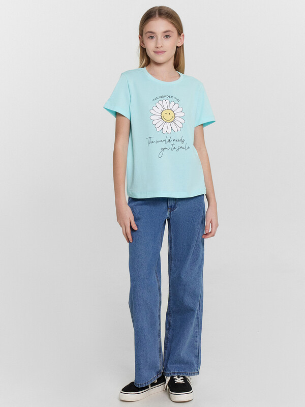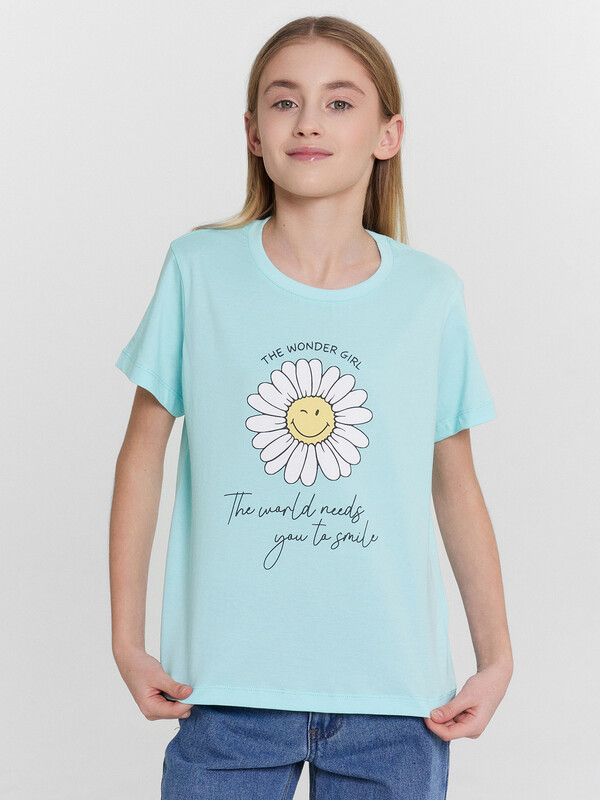 Футболка для девочек из высококачественного хлопка. Рукава - чуть выше локтя, линия плеча спущена. Горловина круглой формы из рибаны. Модель отличается стильным и лаконичным дизайном, идеально подходящим для девочек любого возраста. Круглый вырез горловины и прямой силуэт придают ей изящный и женственный вид, подчеркивая нежность и очарование юной модницы. Благодаря использованию натуральных дышащих материалов, эта футболка создает коже дышать, предотвращая перегрев и раздражения. Особая обработка гарантирует, что швы будут мягкими и не доставят дискомфорта при носке. Многообразие ярких, жизнерадостных расцветок, от пастельных нежных оттенков до насыщенных глубоких тонов, позволит вашей малышке выбрать футболку, идеально подходящую к ее индивидуальному стилю и настроению. Изящные принты и аппликации придают модели неповторимый шарм, делая ее настоящим украшением детского гардероба.