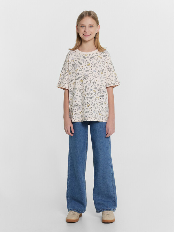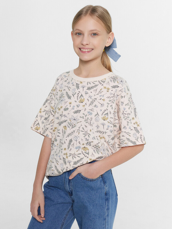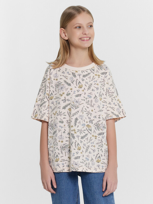 Футболка из трикотажного полотна кулирного переплетения. Силуэт свободный, длина до середины бедра. Рукава короткие, горловина круглая. Дизайн футболки наверняка понравится вашей моднице!